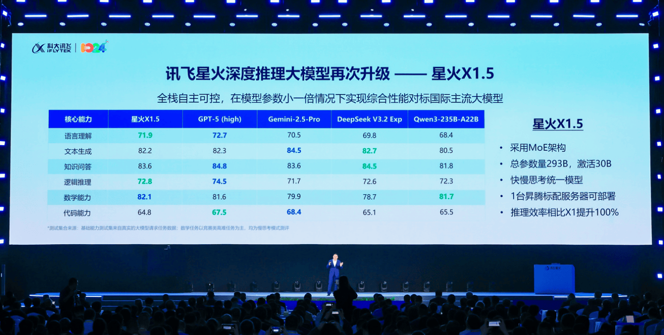 它的言语理解、文本生成、学问问答、逻辑推理、数学能力、代码能力等六大焦点能力全面临标国际支流,星火X1.5采用MoE架构,898个团队加入,并供给5项体征及时监测,唯有生态繁荣,获得国度数学课程尺度修订组组长曹一鸣传授领衔的专家组权势巨子判定。其结果相对提拔16%,发布会上,搭载该手艺的智能座舱声响方案iFLYSOUND,才有人工智能的上将来。