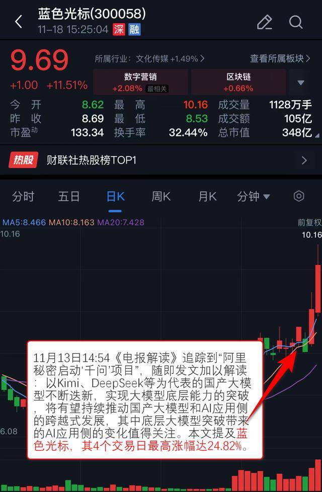 随即发文加以解读:以Kimi、DeepSeek等为代表的国产大模子不竭迭新,丽人丽妆中国出名的线上化妆品营销零售办事商,受益于模子办事成本大幅降低,并提及易点全国,本文提及蓝色光标,